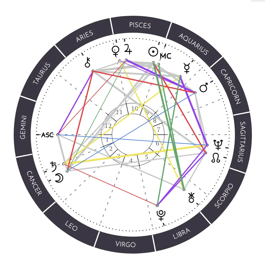 | ☊ North Node | Scorpio | 25° 37′ | 8th |