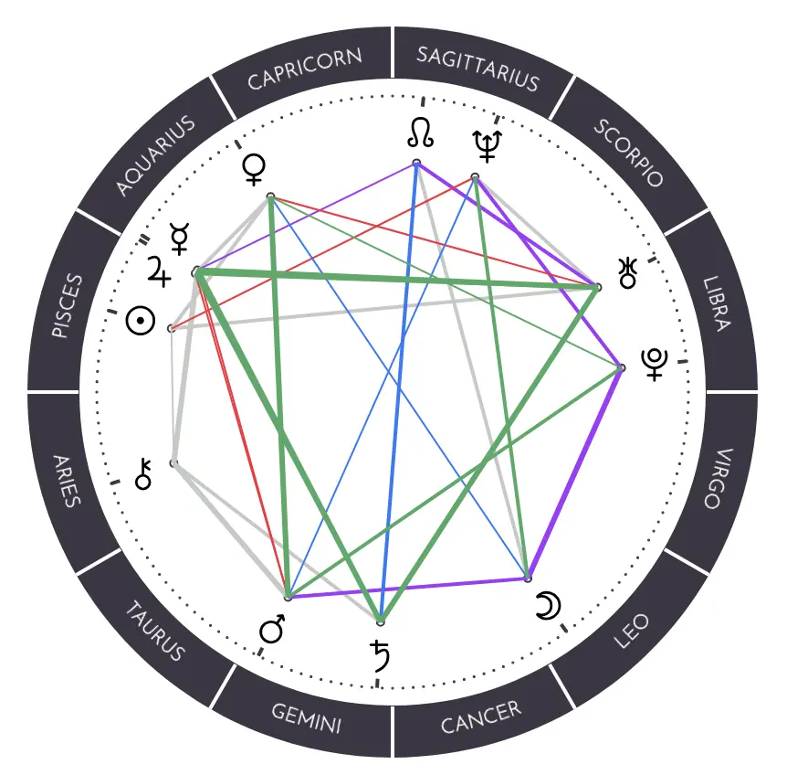 | Midheaven | Pisces | 25° 58′ | — |